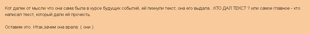 Смотрите что вылжили , но они сами не поняли что выложили и .. Короче вот имеем , следите за логикой - вот человек КОТОРЫЙ ДАВАЛ ТЕКСТЫ ЕЙ... щас вирнуся. Вот они репетируют текст... щас я