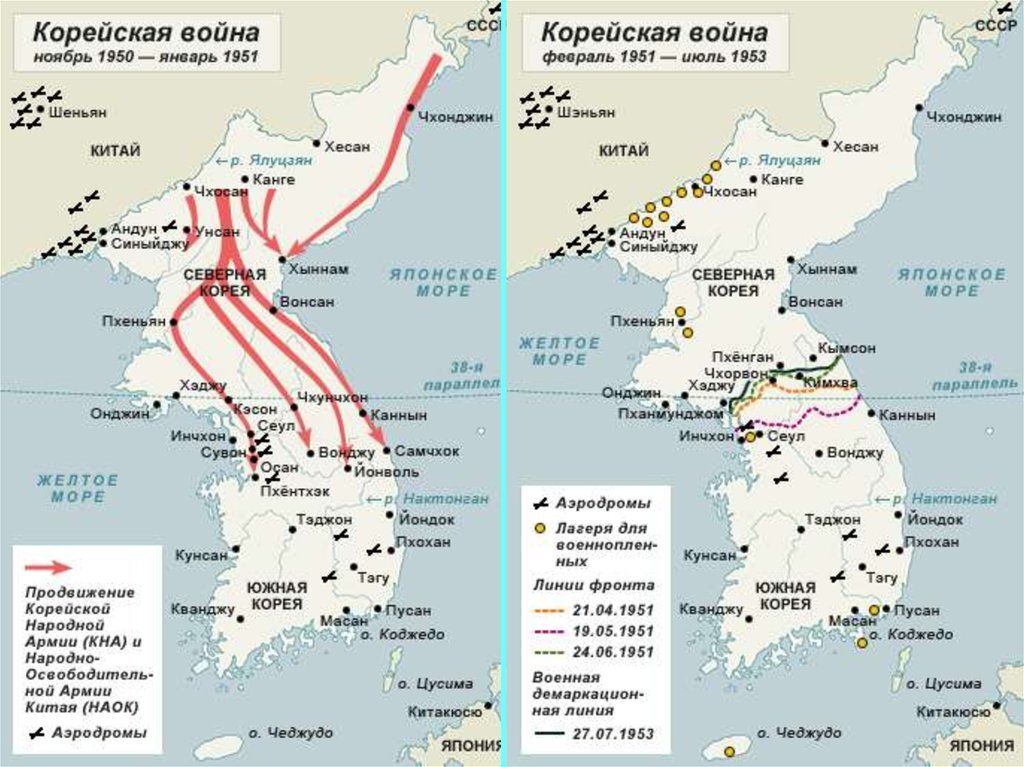 Но получилось то, что и нужно было американцам. Они относительно безболезненно выскочили из Корейской Войны, которая могла продолжаться ещё долго и вряд ли закончилась для Сеула чем-то хорошим. Само «Соглашение о прекращении огня» изначально было юридически ничтожным, как только Китай вывел свои войска из КНДР в 1958-м году, американцы немедля разместили там уйму тактических ядерных зарядов. А в 70-х Южная Корея превратилась в крупнейший азиатский ядерный арсенал янки, число малых боезарядов достигло тысячи, под парами стояли полсотни самолётов, готовых обрушить на северян атомные бомбы.