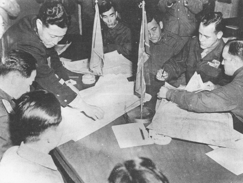 Первый раунд. Итак, пока шли славословия о «перемирии», бои местного значения продолжались с небывалым накалом, каждая из миллионных армий строила свои планы «наступов» и «контрнаступов», чтобы улучшить переговорные позиции. Мало того — претворяла их в жизнь. Янки тем временем старательно маскировали свою наступательную операцию у реки Букхаган (с намерением выйти к восточному побережью), установили драконовские меры маскировки, а чтобы противника запутать — сели тихими овечками 10-го июля 1951-го года за переговорный стол в Кэсоне. Сразу выкатив неисполнимые требования к коммунистам.
