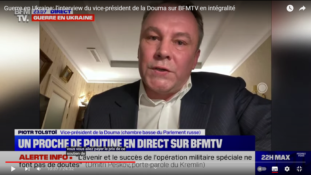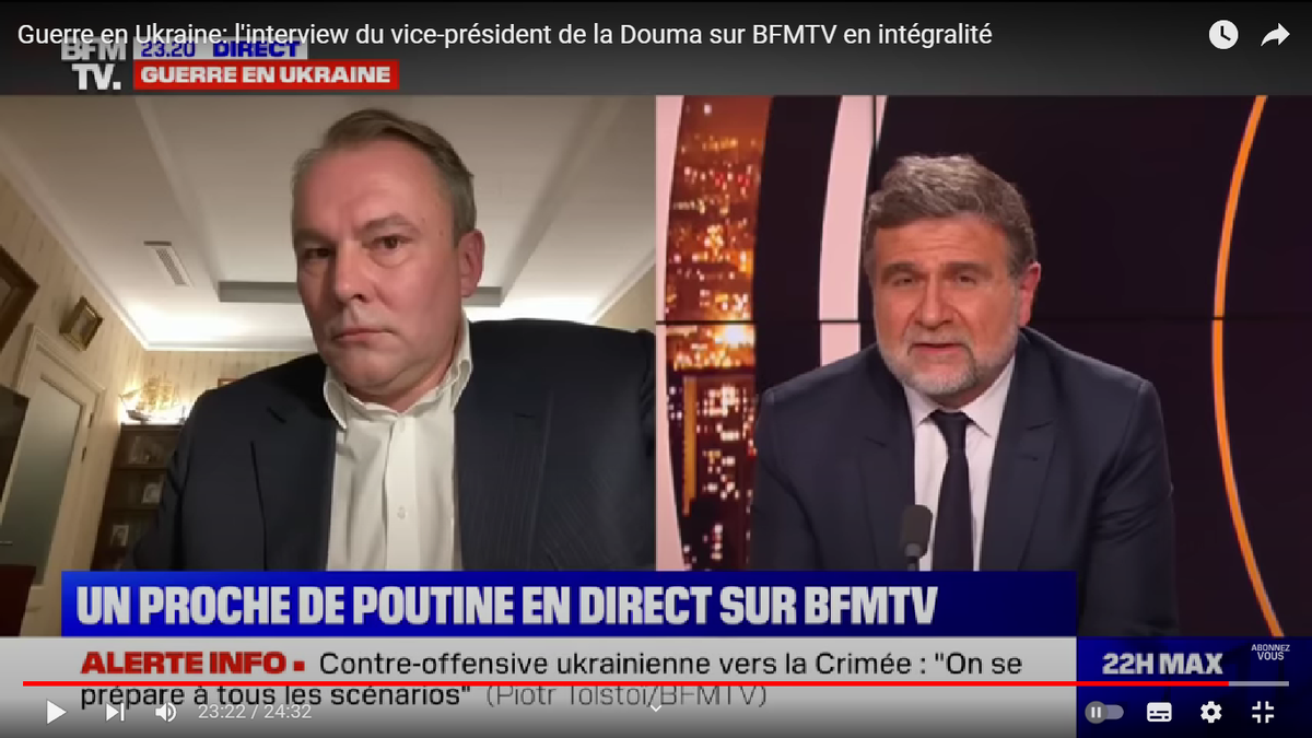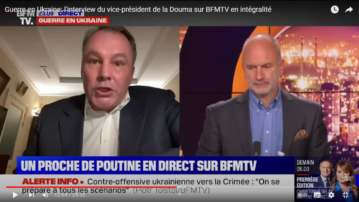 Петр Толстой "рулит" в прямом эфире на французском ТВ