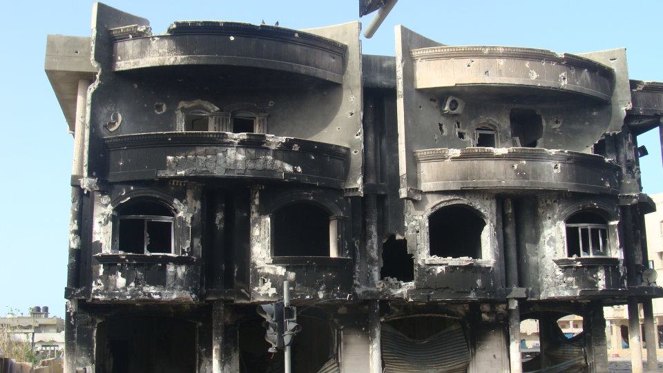 Град непокорённый. Стяг Джамахирии по прежнему реет - даже над руинами. Бой был жестокий - но бой этот выигран (12-13 окт.).
