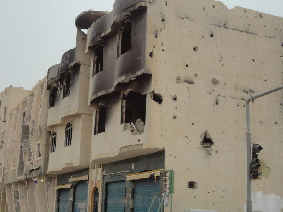 Те дни октября полоснули острым лезвием по душам и судьбам многих ливийцев и многих из нас, кто живо сопереживал Ливийской трагедии. Они оставили неизгладимые шрамы в нашей памяти. На лике же героического города осталась незаживающая рана - вызженные руины главной улицы 2-го района Сирта. Здесь шли ожесточённые бои 12 -13 и 18 - 19 октября 2011 г. Вспомянем стойких защитников Джамахирии! Взглянем ещё раз на скорбные камни. И как эта улица выглядела до войны.