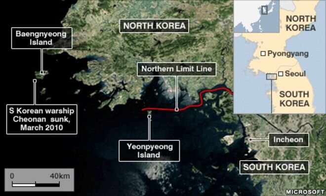 США не спроста закошмарили КНДР своими учениями, проводящимися всегда в одной точке, крайне болезненной для северокорейцев. Речь о морской границе между Кореями, пяти небольших островах неподалёку от Пхеньяна и северо-западного побережья КНДР в Жёлтом море. Большой и Малый Ёнпхендо, Пэннёндо, Большой и Малый Чхондо — давняя проблема КНДР, «южнокорейский нож у горла Северной Кореи», как сказали с партийных трибун поборники идей чучхе.