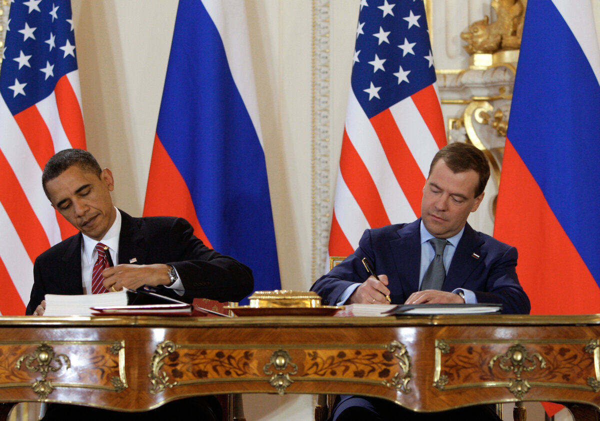 Договор «по сокращению стратегических наступательных вооружений» (СНВ-3, ДСНВ) был подписан Дмитрием Медведевым и Бараком Обамой 8-го апреля 2010-го года в Праге. Тем самым поставив чернильную точку в долгих консультациях и согласованиях, длившихся с марта 1997-го. Сначала речь шла о «потолке наличия» не более двух с половиной тысяч стратегических ядерных боезарядов. Особым пунктом (на котором настаивал Билл Клинтон) должен был стать статус самого Договора, бессрочный.