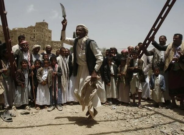 Это в Сане так танцуют и Дамаре. Но, судя по кадрам всеарабской «Аль-Джазиры», йеменский боевой танец исполняли вчера и в долине Тихама (это побережье Красного моря на западе). Там древний пляс называют «Фарсани», кажется. Вместо традиционного кинжала джамбия используя автоматы «Калашникова». Радость большая у хуситов случилась, оказывается... на них обратил внимание Большой Шайтан. Отгрузил 45 тонн взрывчатки по семидесяти объектам, прислав сотню крылатых ракет. Лично убеждён — большей частью по ложным целям, либо незначительным.