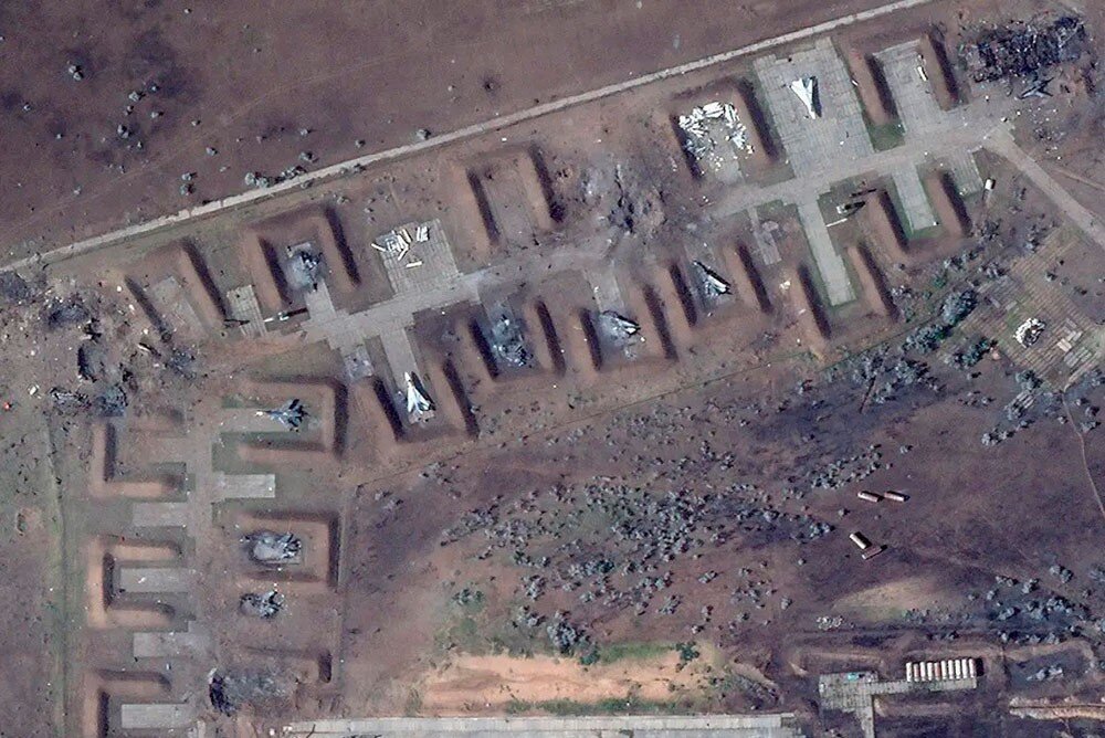 Через день американская компания «Planet.Labs», занимающаяся спутниковым зондированием поверхности Земли (часто в интересах Пентагона), выложила фотографии аэродрома в Новофёдоровке. Можно видеть территорию «до» и «после» происшествия, повреждённые и полностью уничтоженные машины боевой авиации. Можно разглядеть нечто похожее на воронки от взрывов, находящиеся не на местах стоянки конкретных самолётов, а на некотором удалении от капониров.
