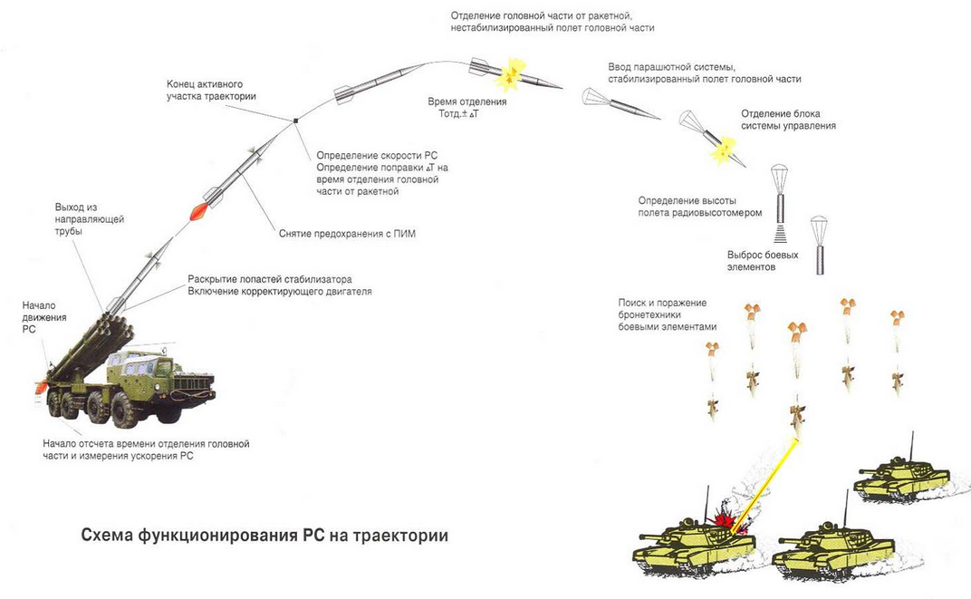 Поскольку давно с холодком по спине ожидаю появления на Украине тактических ракет для РСЗО HIMARS семейства ATACMS, прикинул… вариант. Такое мог сотворить только один боеприпас — «ATACMS Block IIA» с кассетной головной частью, в которой находятся самоприцеливающиеся боевые элементы «BAT» улучшенной конструкции. Схема поражения примерно такова, как у наших «Ураганов»:
