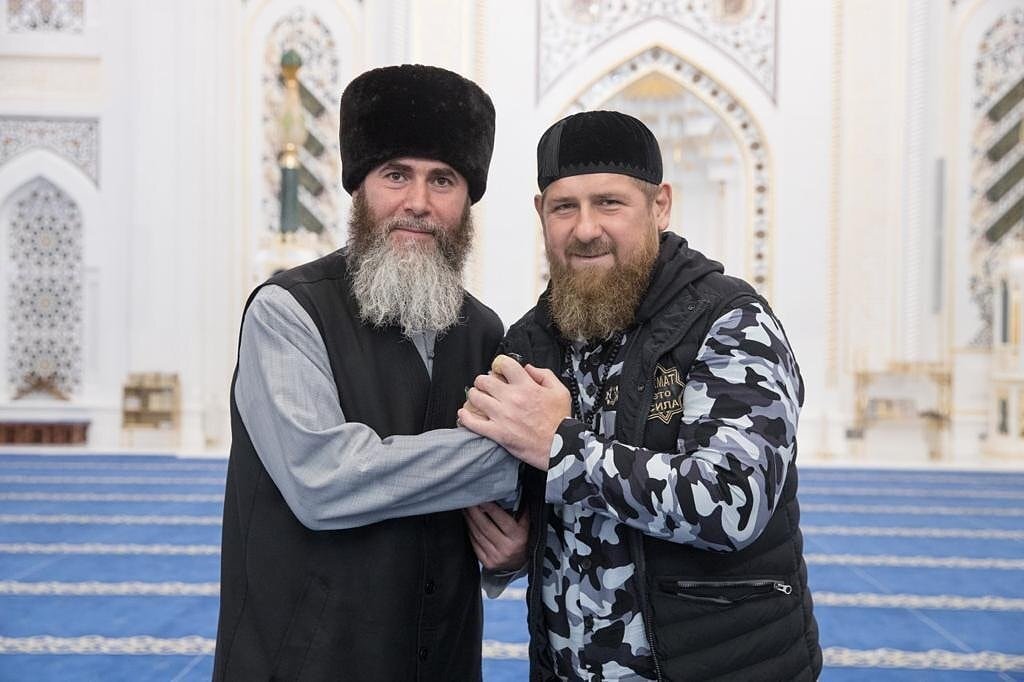 Салах Межиев и Рамзан КадыровТо есть, признанный в мире ислама религиозный деятель воспользовался своим правом и назначил «джихад» — достижение конкретной цели. Светский руководитель (Рамзан Кадыров), управляющий огромной мусульманской общиной чеченского народа, более широко истолковал слова муфтия, напомнил о священной обязанности мусульман включаться в вооружённую борьбу, быть воинами, идти в военкоматы. Либо сбрить бороды и не называть себя мусульманами.