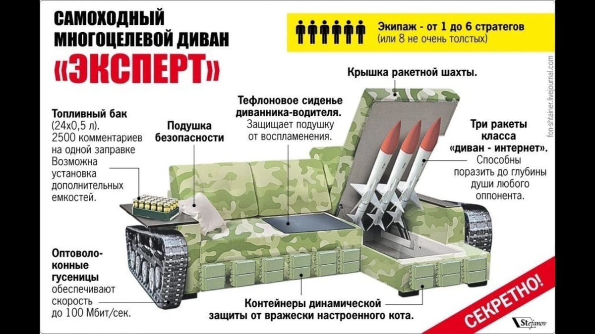 Советы тоже не блещут новизной: мобилизация, военно-полевые суды для спящих на пультах зенитчиков, полный разрыв отношений с Западом, удары возмездия по «центрам принятия решений» от Польши до Вашингтона. Уф, лень уже перечислять. Особенно тексты с патетическими воплями: «а если в ракетах будет специальная боевая часть, тоже утрёмся!? Где наши стратеги Генштаба, ведущие Странную Специальную Операцию, к ответу!