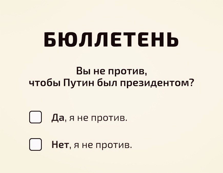 Хороший вопрос. Это про сам процесс и процедуру выборов. Нужно и должно, Главный Закон державы так велит, хотя даже последнему ушибленному либерализмом понятно: в середине марта пройдёт некая бюрократическая процедура, где главной интригой будет разве что явка избирателей. А для особо одержимых политическими технологиями интерес будет представлять отрыв от ближайшего конкурента. Поэтому появившиеся вчера интернет-мемы о внешнем виде бюллетеня... справедливы, как минимум: