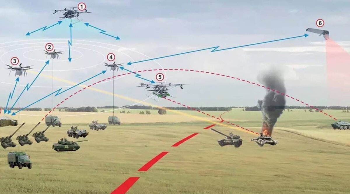 Работает это так: с передовой приходит цифровой снимок... ну допустим, хорошо укреплённого «опорника» перед нашей штурмовой группой, подошедшей скрытно и готовой броситься в атаку. Оператор разведывательного БпЛА расставляет маркеры выявленных огневых точек, укрытий, важных коммуникаций, на основании этого командир «Коалиции» программирует специальный режим «одновременного огневого налёта», когда дюжина снарядов (выпущенные под разными углами возвышения орудия) накрывает в глубину или по фронту оборону супостата едва ли не одновременно, либо с минимальным временем прилёта.