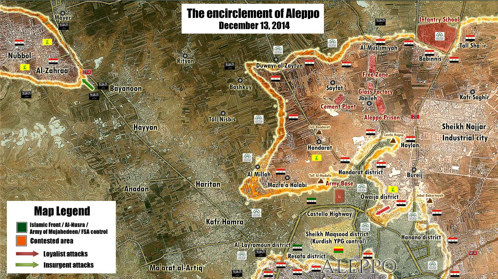 В декабре 2013 года активные бои здесь притихли. А в январе 2014 было заключено перемирие в восточной части анклава - Бейт-Сахме (1), Бабиле (2) и Ялде (3).