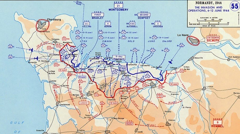 Наступил День «Д», англичане высадились во Франции без потерь и сразу устремились силами Второй Армии к невзрачному городку Кан. Споткнувшись тут же, поскольку Роммель намеревался дать бой не в глубине Нормандии, а именно на её пляжах.