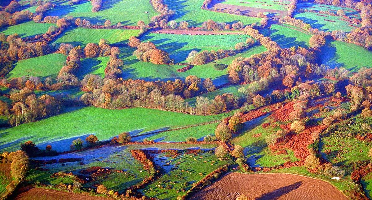 Бокаж — тип культурного ландшафта, где пастбища, поля и луга отделены друг от друга и окружены земляными насыпями.