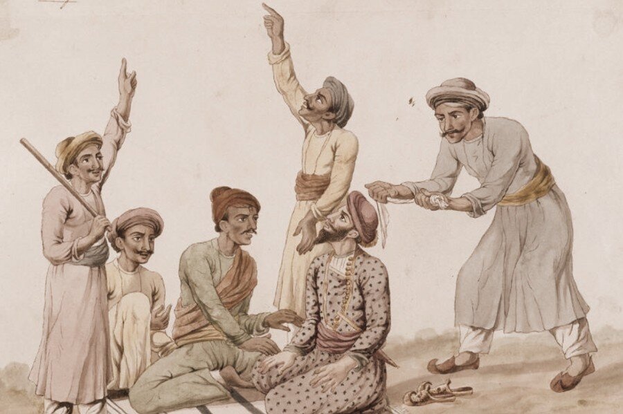Чтобы обосновать неуловимость «ритуальных душителей» (с которыми до прихода англичан индийцы проблем не испытывали, лишь пересказывали друг другу дикие мифы), Уильям Слиман и колониальные власти рассказывали стройные для европейцев истории. Во-первых, тхагов покрывали религиозные власти и представители высших каст, богатые купцы и торговцы (им душегубы якобы продавали награбленное).