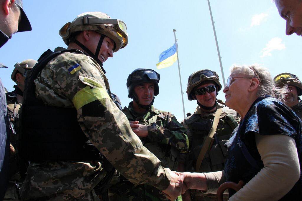 Порошёнко довольно ухмыляется, глядя на строй карателей в Славянске.