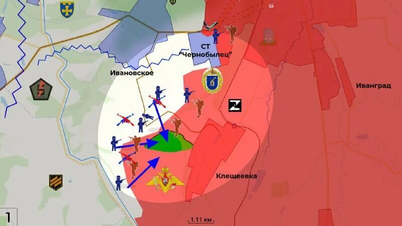 Интернет-сообщество и военные эксперты немедленно вскинулись, прочитав «мы оставили Клещеевку». Местечко само по себе с точки зрения оперативного искусства бесполезное (находится в низине), но вот окружающие высоты… это другая история. Потеряй мы их — с одной стороны Бахмут/Артёмовск окажется в огневом полу-окружении. Поэтому так напряжённо и следят за событиями в Клещеевке сведущие люди.